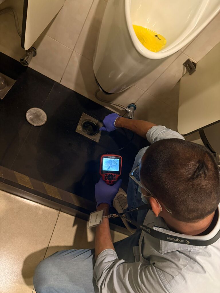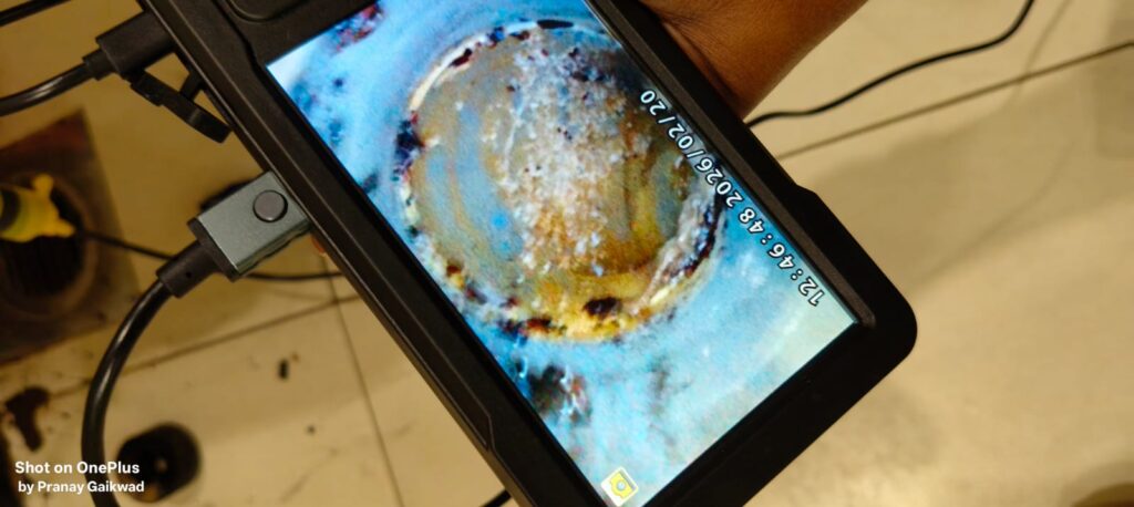 Professional drainoscopy services for urinal pot drain lines in corporate offices and malls. Detect scaling, salt deposits, and hidden blockages with advanced pipeline camera inspection. Prime Solutions delivers accurate diagnosis and effective drainage cleaning across India.
